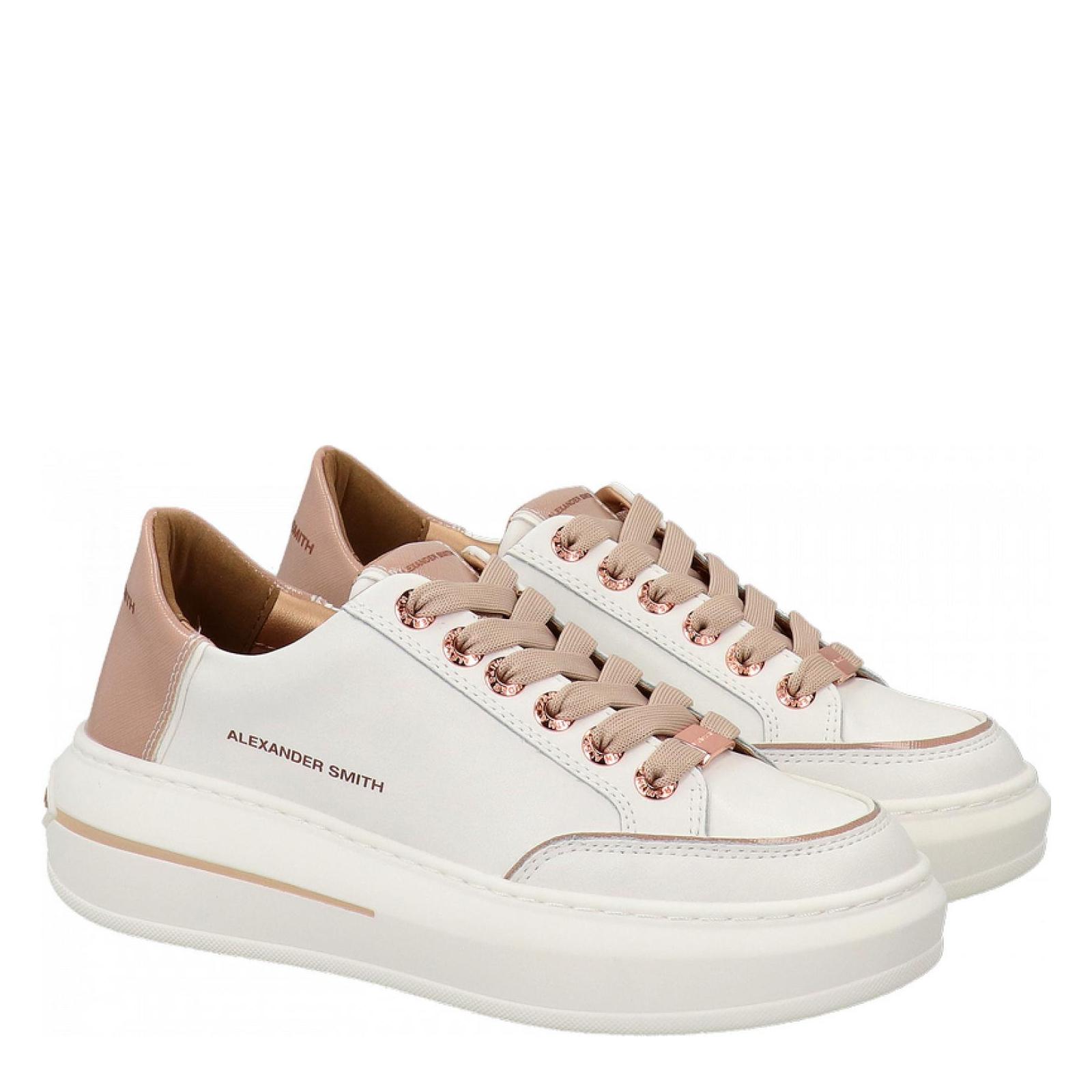 La Lancaster di Alexander Smith รจ un match tra i dettagli preziosi e ricercati della tomaia e degli occhielli, con lโaudacia e lโimportanza della suola, per uno stile che combina eleganza e unicitร , in perfetta sintonia con lโanima del brand, in questa variante in pelle bianca con dettagli in nude e lacci in tono. Logo a lato e sul retro, fodera interna in tessuto, soletta interna removibile e suola in gomma ultra leggera alta 5 cm.