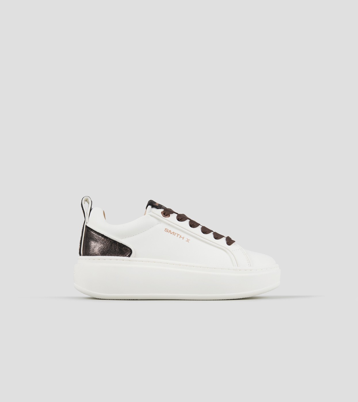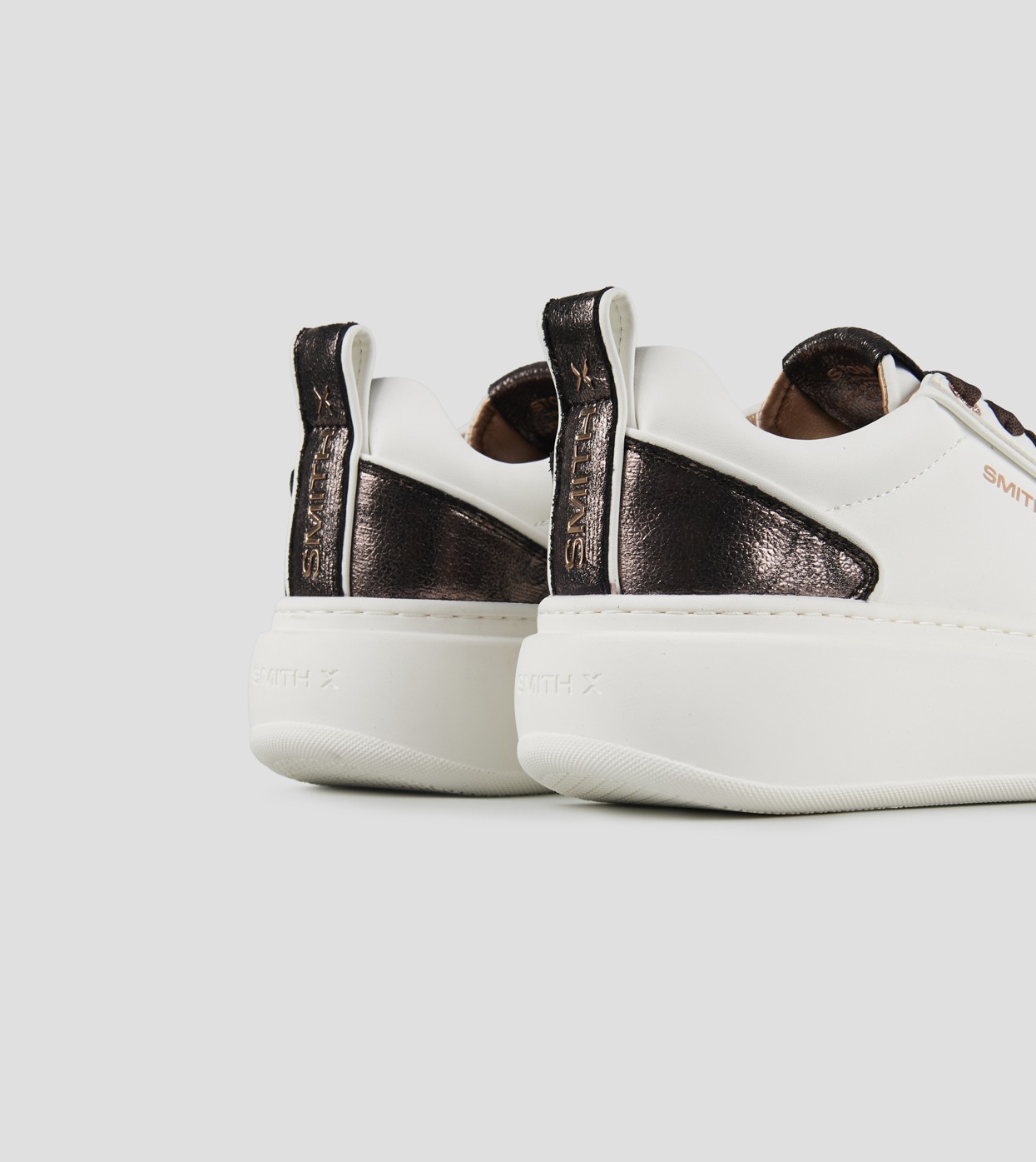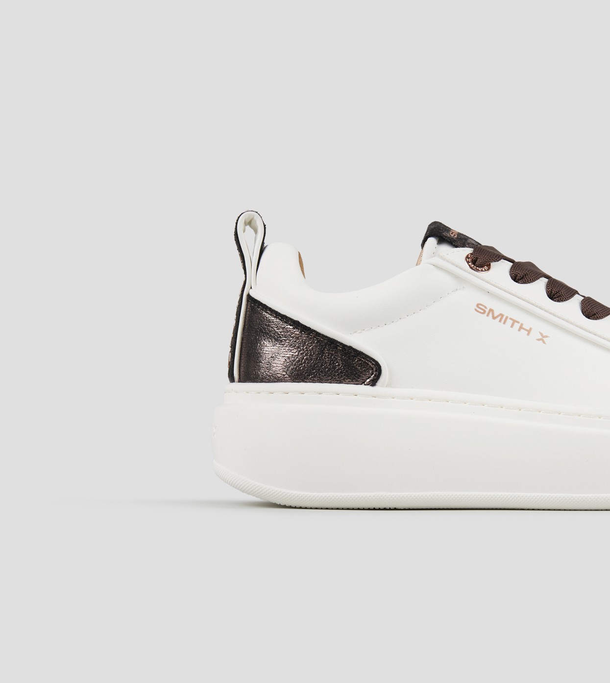 Pulita, lineare, intramontabile. STONE รจ la sneaker minimal firmata Smith X, che unisce spirito urbano e gusto raffinato in un design unisex pensato per durare nel tempo, in questa varianteย bianca con tallone in laminato leopardato bronzo.