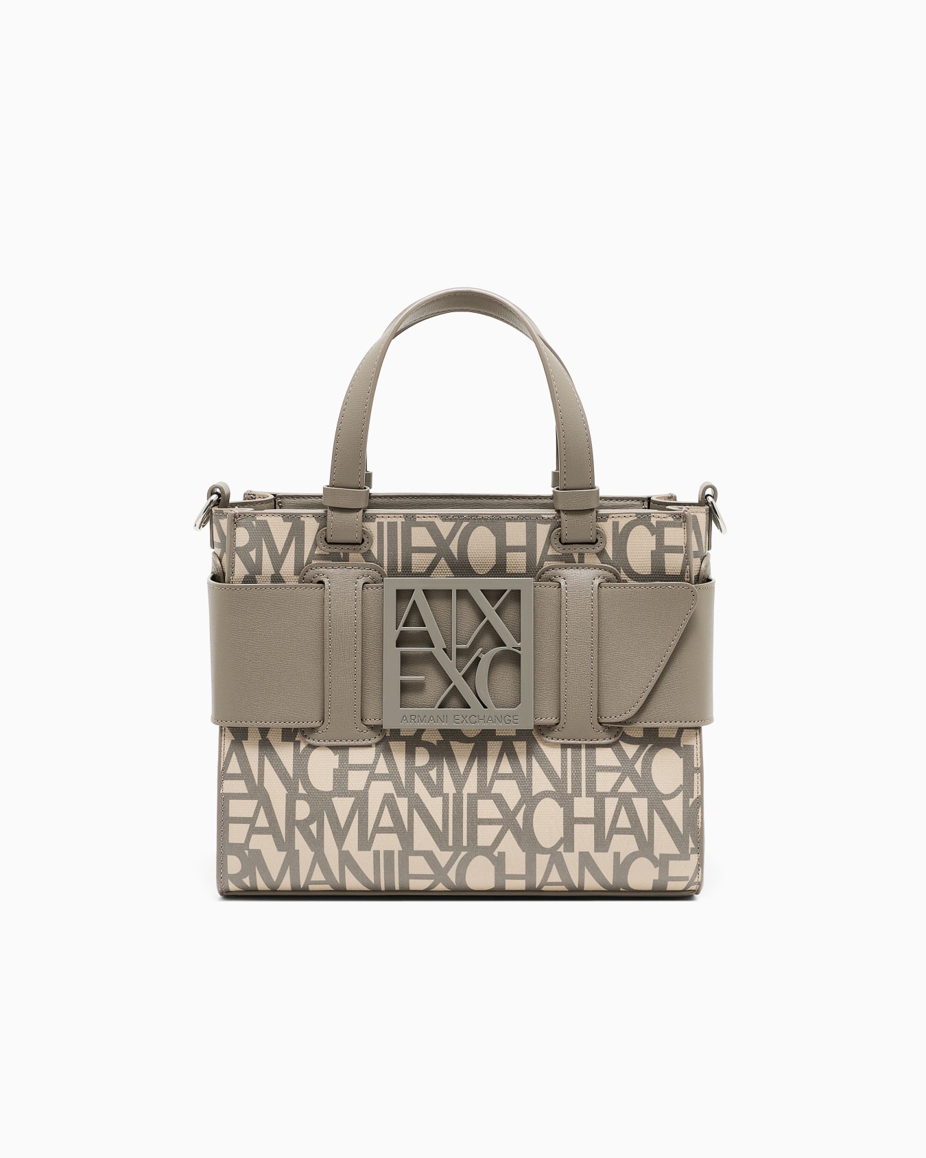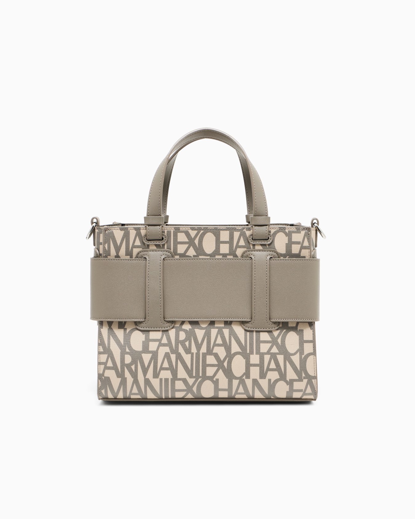 Questa borsa modello tote è realizzata in ecopelle effetto “sale e pepe” e ha maxibanda a contrasto e due manici. Tracolla removibile e tasca interna.