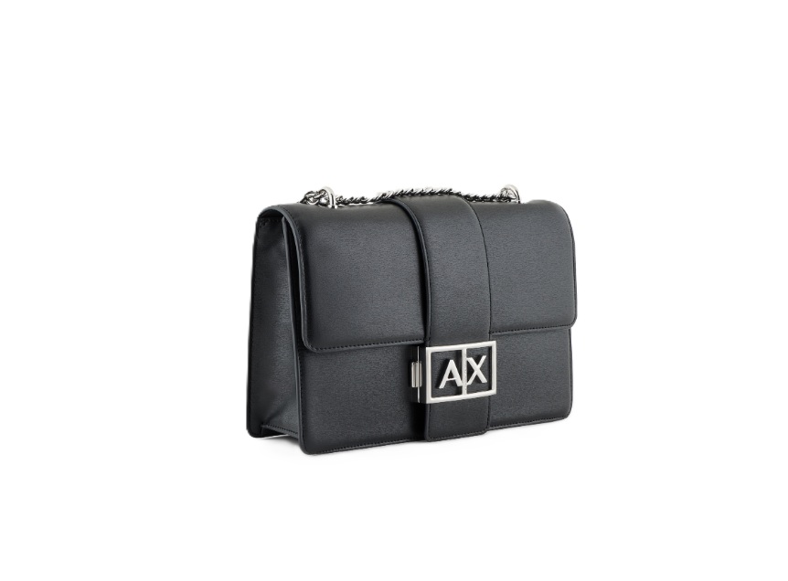 Questa borsa Armani Exchange combina linee pulite e dettagli luminosi, creando un accessorio elegante e contemporaneo perfetto per completare qualsiasi outfit. Realizzata con finitura effetto pelle, presenta una patta frontale con chiusura magnetica impreziosita dal logo AX in metallo che diventa protagonista del design. La tracolla con catena metallica e inserto regolabile consente di indossarla comodamente a spalla o a tracolla, adattandosi a diverse esigenze di stile.
