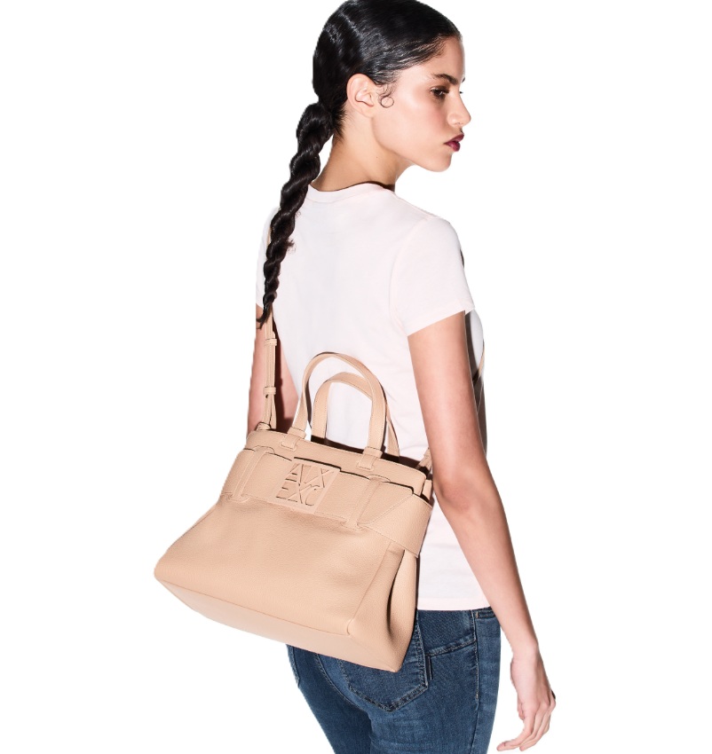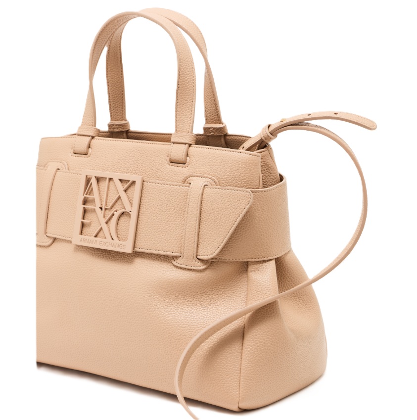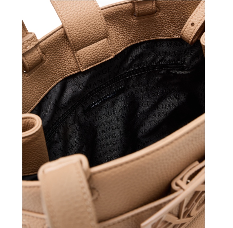 Elegante e capiente, questa borsa Armani Exchange si distingue per il suo design strutturato e raffinato, perfetto per accompagnare i look quotidiani con un tocco sofisticato. Realizzata con finitura effetto pelle dalla texture martellata, è caratterizzata da una fascia frontale con maxi logo AX in rilievo tono su tono, dettaglio iconico che valorizza l’estetica del modello. I doppi manici consentono di portarla comodamente a mano o al braccio, mentre la silhouette ampia la rende ideale per contenere tutto l’essenziale.