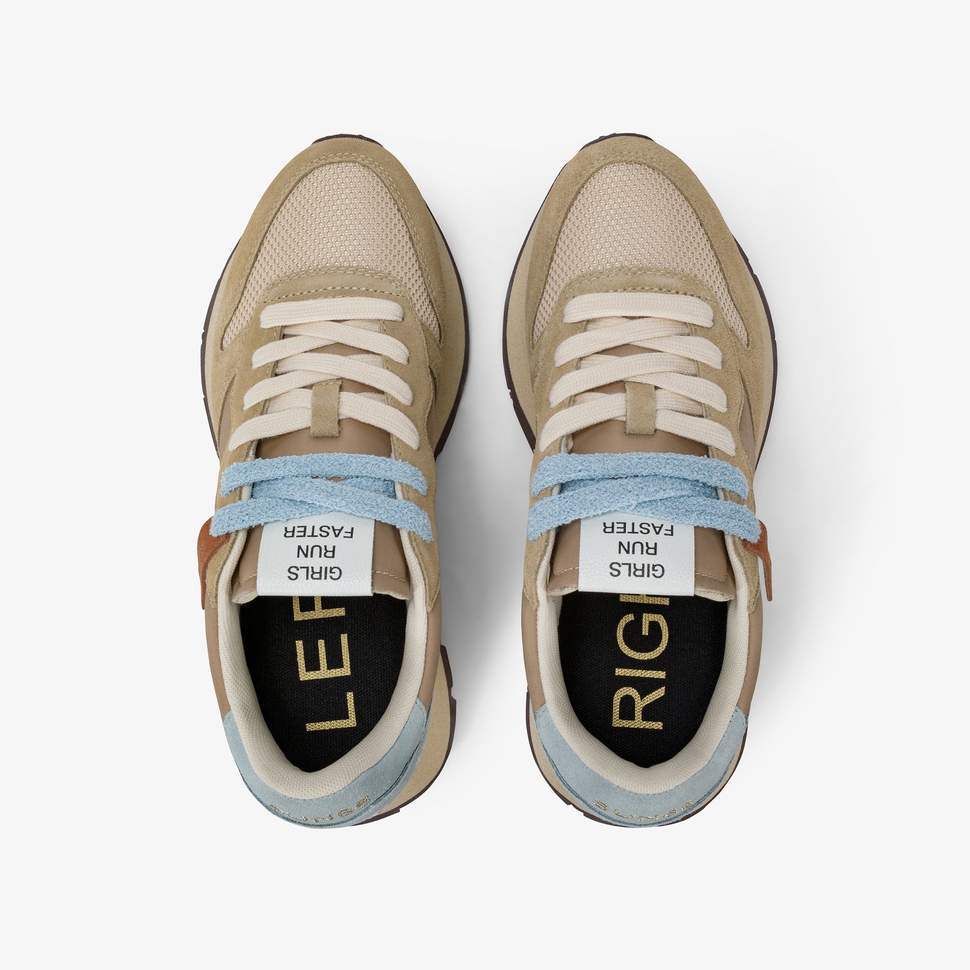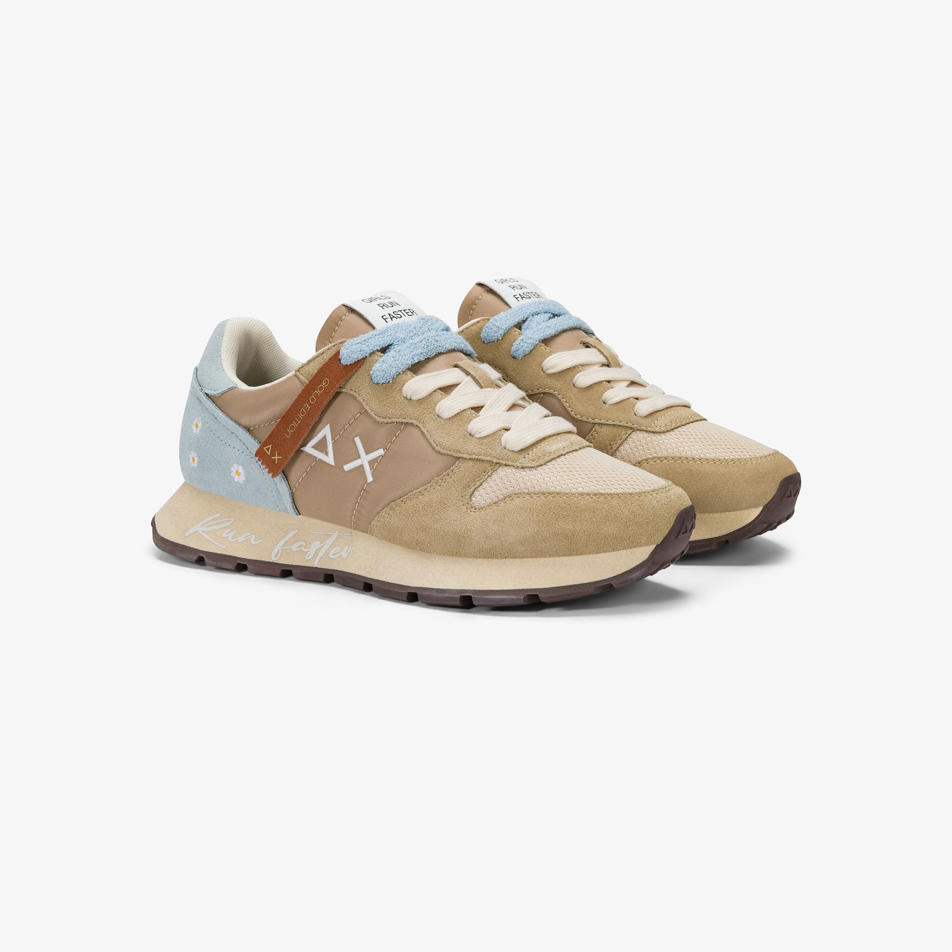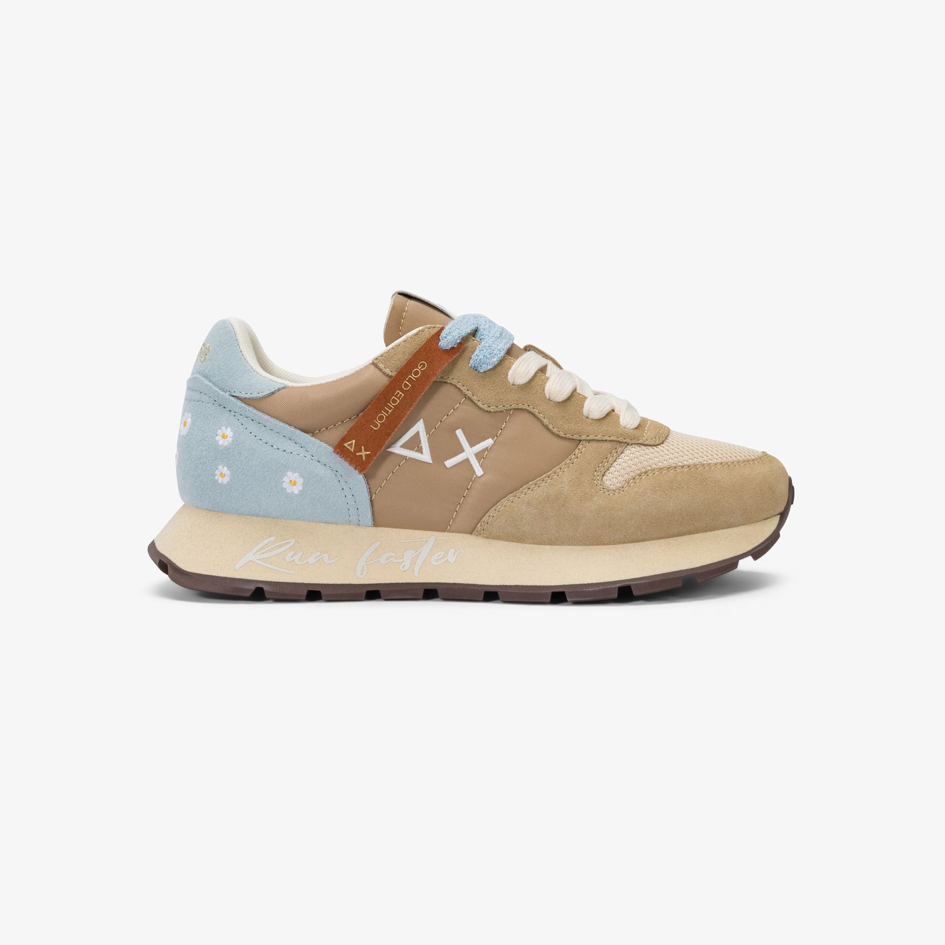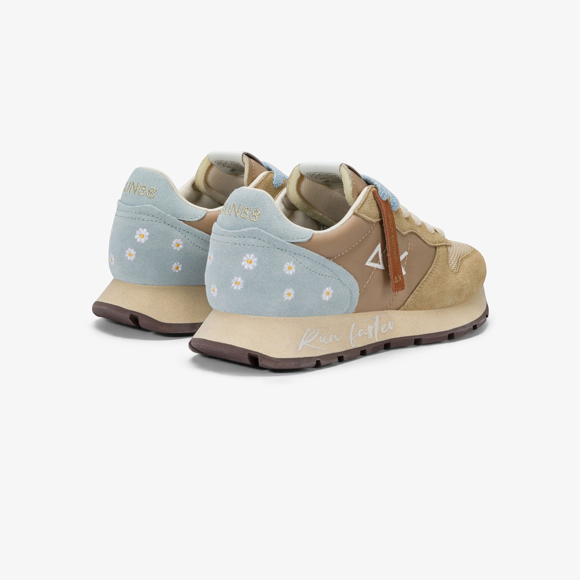 Design classico dall’estetica autentica. La sneaker Ally Vintage si ispira all’icona SUN68 e la reinterpreta con un ricercato effetto used, lo spoiler in suede con ricami floreali e il lettering “Run faster” che decora la suola. Indossala con i pantaloni cargo e una felpa hoodie della collezione per un outfit urbano dal tocco femminile.