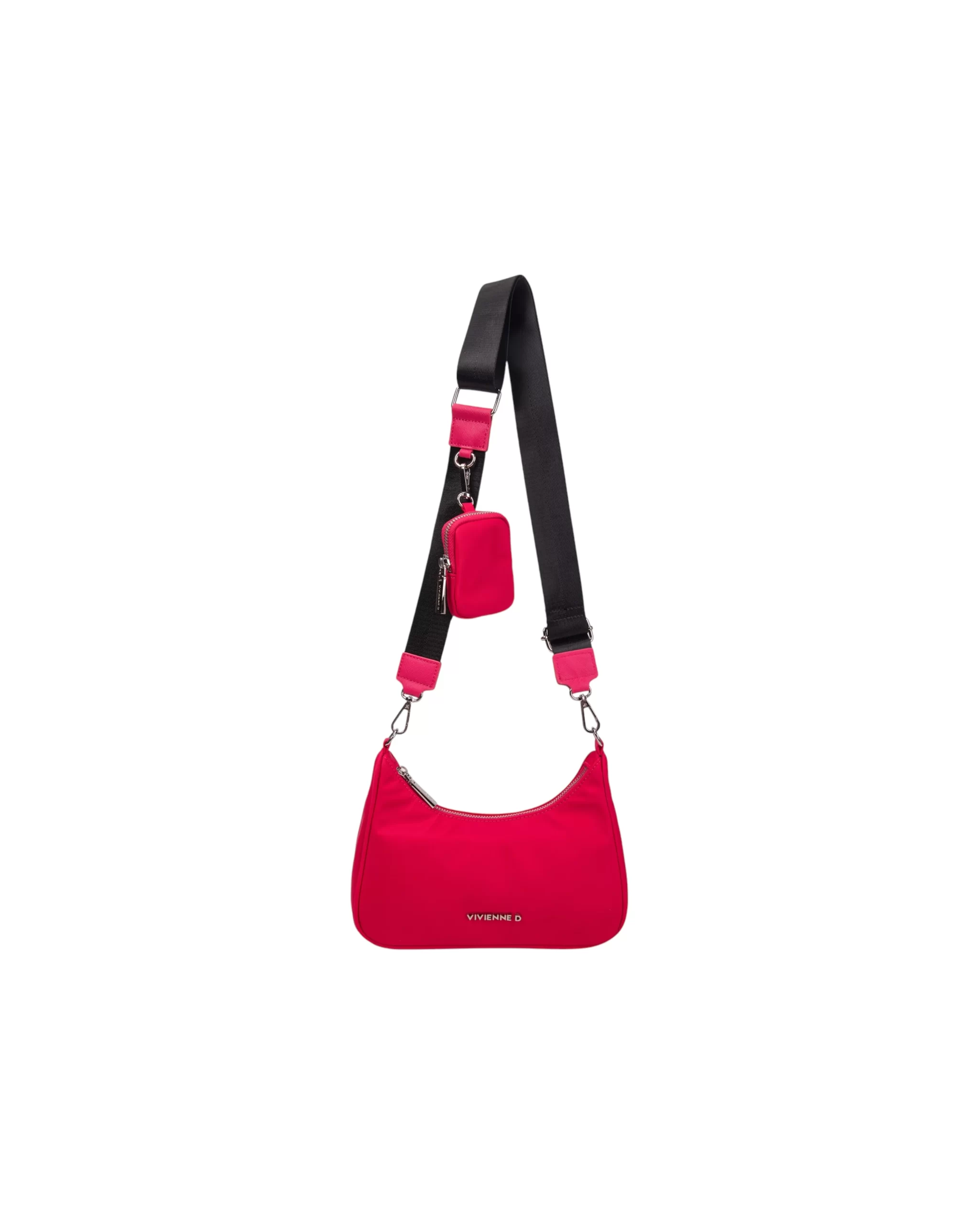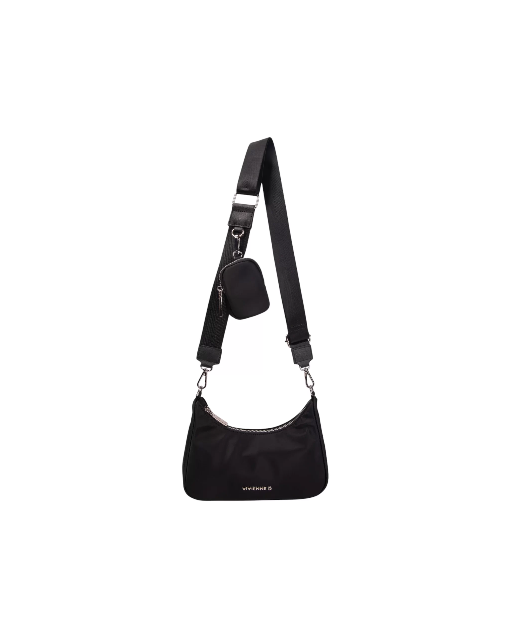 Mini bag in nylon, con due tasche interne di cui una con zip, logo VIVIENNE D finitura dorata