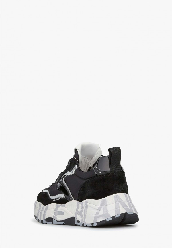 Edizione city chic della sneaker Club, decorata con dettagli in vernice su slash e topponcino. I profili argentati e le traforature aggiungono luminositร  a un modello immerso nel nero piรน elegante, completato da dettagli sportivi come il loop sopra il tallone e la suola a doppia altezza in gomma ultra leggera, con serigrafia a contrasto sul bordo.